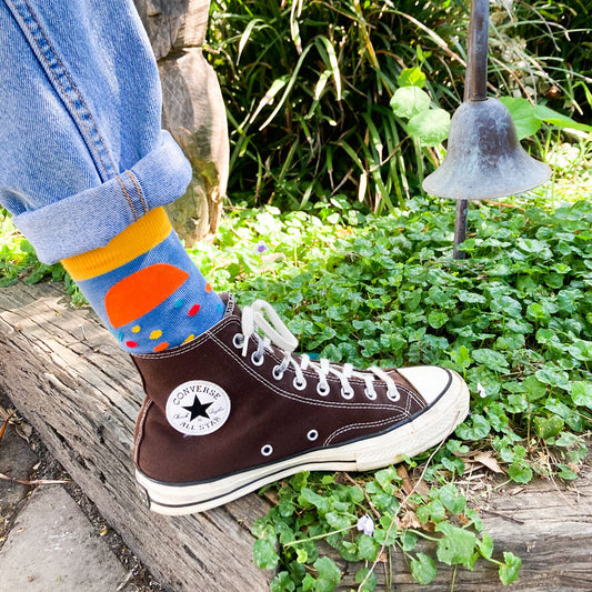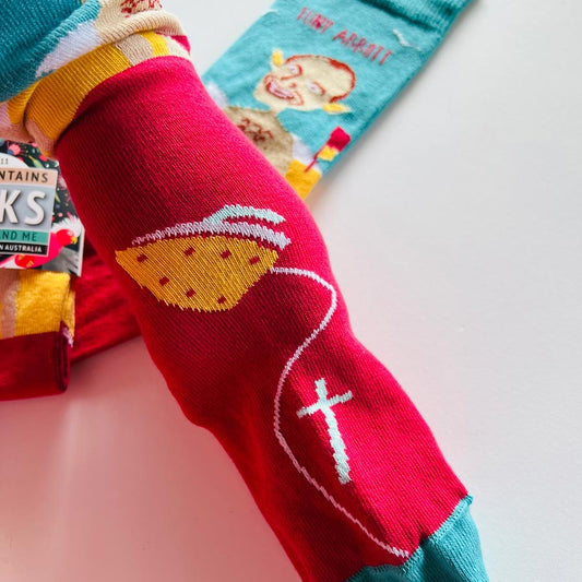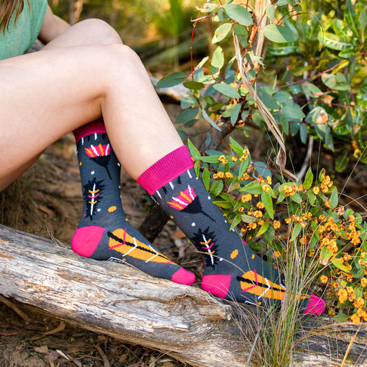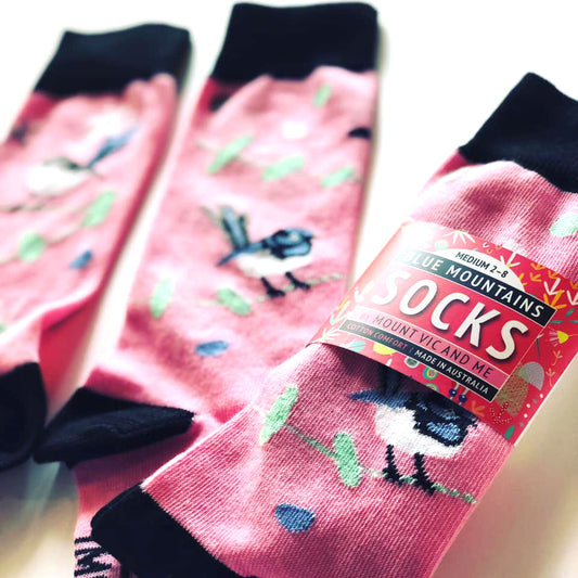 Hooray to Aussie made socks! Our Blue Mountains Socks are fabulously bold, cotton rich and great fun. Perfect as dress socks, hiking, board room and just a shot of colour when you need to spruce up your garb.