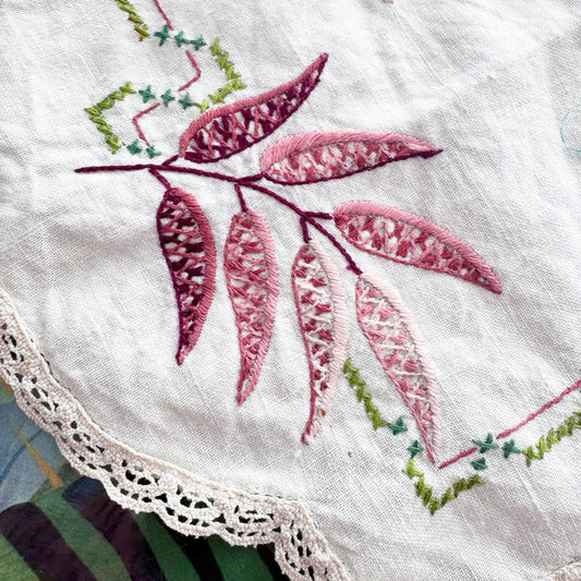 Autumn leaves embroidered doily