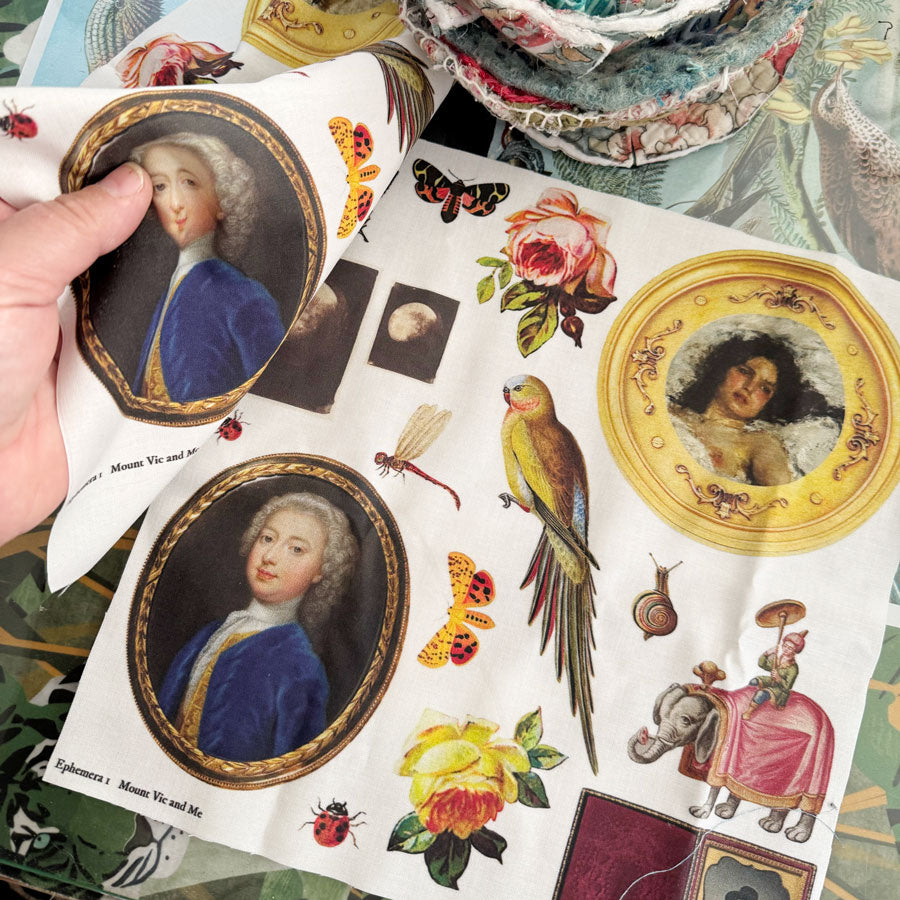 Ephemera vintage elements cotton panel