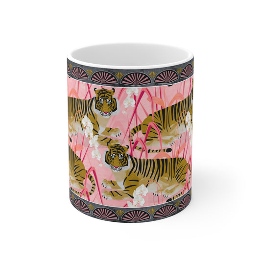 Gold Tigers on pink mug
