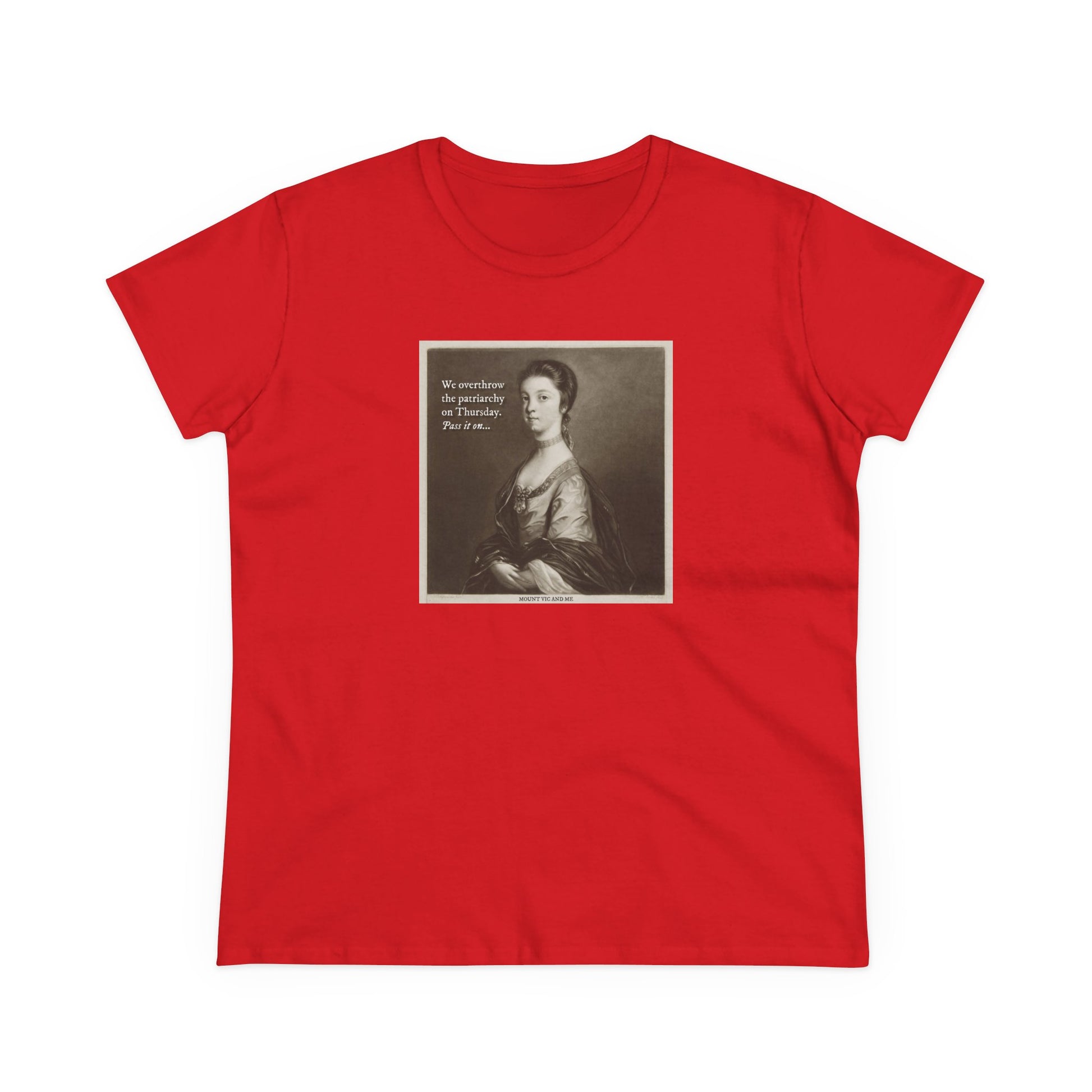 We overthrow the patriarchy on Thursday semi-fit t shirt