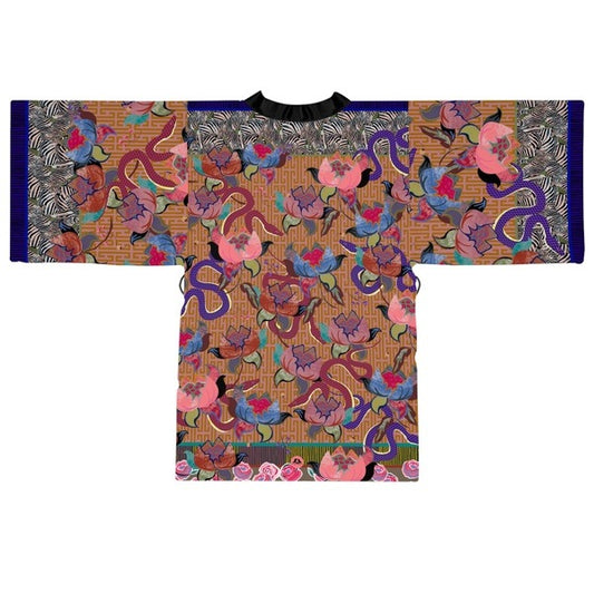Designed to be dressed up for a party or dressed down to wear at home. Either way, do it with lots of colour and flair. Our kimono-style robes are made to order and shipped directly to your door in around 4 weeks (Australia).