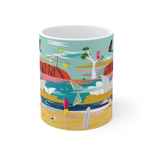 Let’s go travelling! Grab your mug for the road trip. These funky chunky white ceramic coffee mugs are microwave safe. Designed in the Blue Mountains and printed in Australia. Our mugs get delivered to you directly via our manufacturer in around 10 days.
