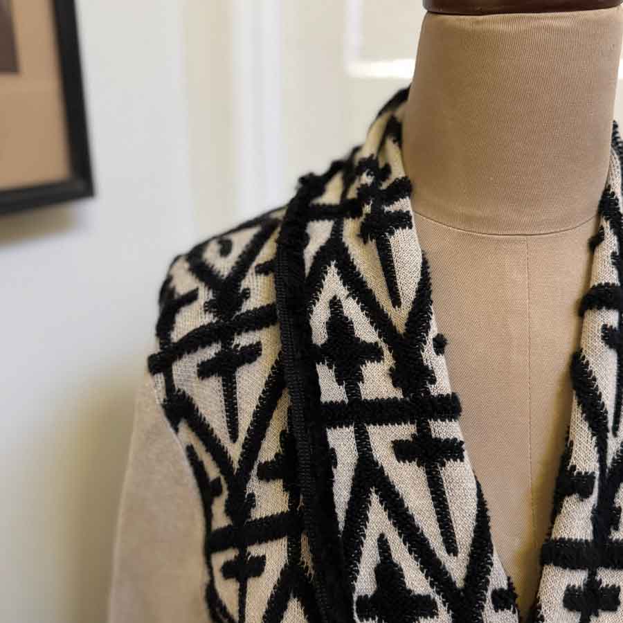 Incredible cardigan style coat by Odd Molly in neutral monochromatic colours. Has a removable tie for waist. The pattern is divine.