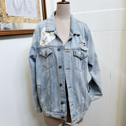 sz XL bird embroidered light denim jacket