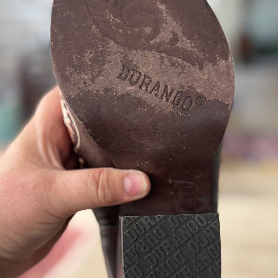 Durango boots, easy pull on design. Size in boot: US 11M, Eur 42M, UK 8M, 27cm. Removable inner sole which is nice and spongy for long wear.
