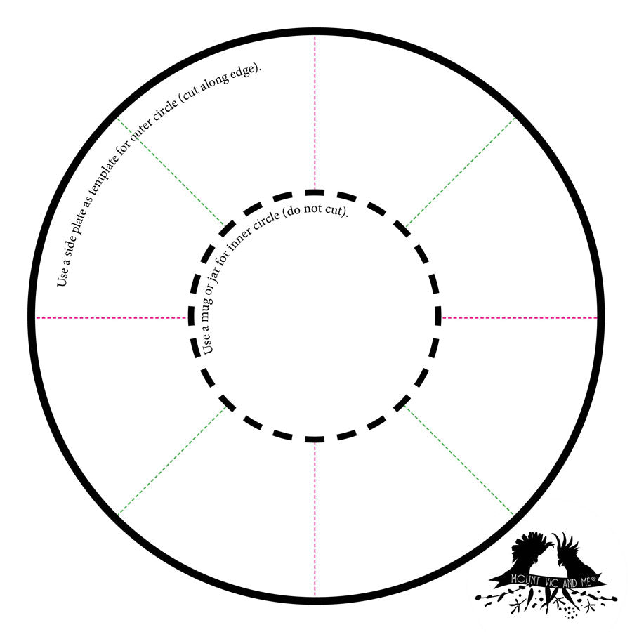 • Template guide is shown here giving you an idea how to shape the bowl and decide how many cuts you want.