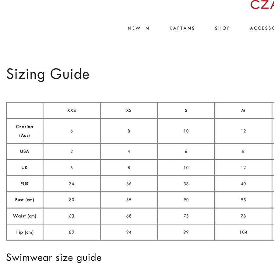 Size guide for our goodies
